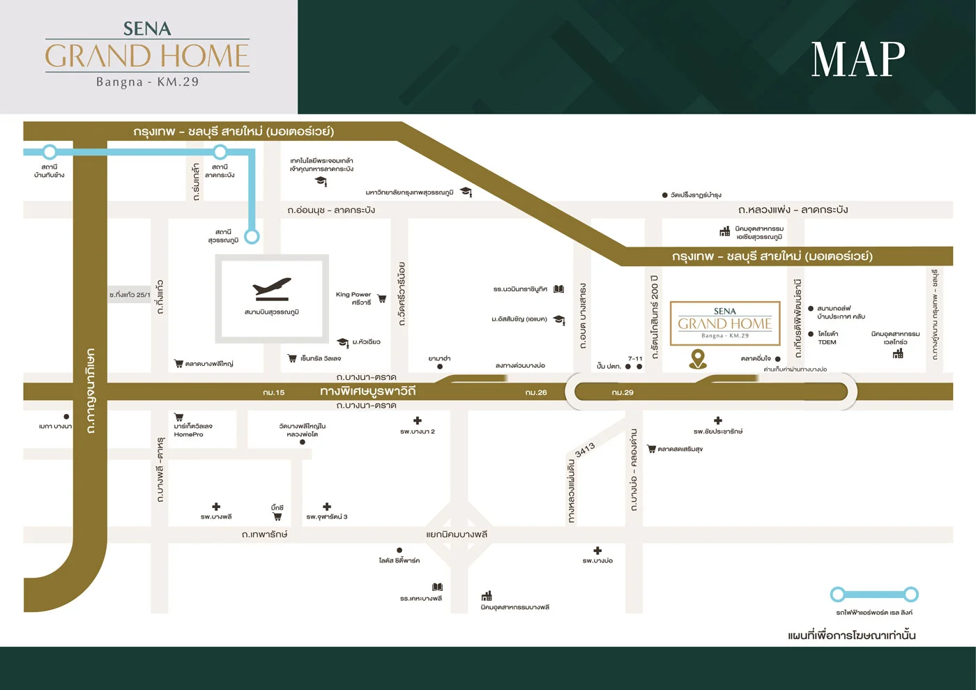 เสนา แกรนด์โฮม บางนา กม.29 บ้านเดี่ยวคุณภาพติดถนนบางนา-ตราด ออกแบบเพื่อยกระดับคุณภาพชีวิตอย่างยั่งยืน ท่ามกลางชุมชนสีเขียวครบครันด้วยสิ่งอำนวยความสะดวก และนวัตกรรมเพื่อการประหยัดพลังงานสูงสุดถึง 85%* ให้คุณใช้ไฟฟรี 24 ชม.*