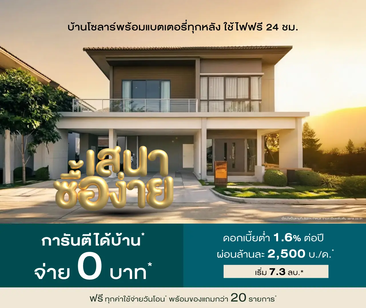 เพราะพลังแห่งความสุข…เริ่มต้นได้ที่นี่ ที่…เสนา แกรนด์โฮม ให้คุณได้ใช้ชีวิตบนสังคมมีระดับที่อบอุ่น แต่ไม่แออัด เพียง 37 ยูนิตในโครงการ และคุณภาพชีวิตดียิ่งกว่า ด้วยนวัตกรรมแห่งอนาคตที่เอื้อต่อการใช้ชีวิตสูงสุดด้วย Solar With Battter และ EV Ready พร้อมทั้งเป็นส่วนหนึ่งในการลดการปล่อย CO₂ และส่งเสริมการใช้พลังงานสะอาดที่ยั่งยืนเพื่ออนาคต เสริมด้วยระบบ Active Air Fresh System ที่ช่วยเติมอากาศบริสุทธิ์และกรองฝุ่น PM 2.5 เพื่อสุขภาพที่ดีของทุกคนในครอบครัว