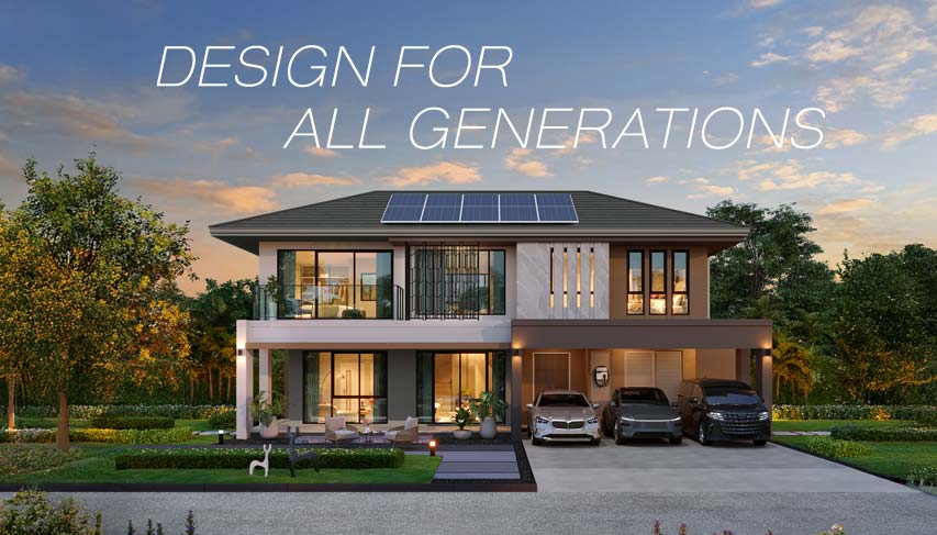 บ้านเดี่ยวหรู ขนาดใหญ่ที่สุดของโครงการ พื้นที่ใช้สอยเกือบ 340 ตร.ม. 4 ห้องนอน 4 ห้องน้ำ รองรับการอยู่อาศัยทุก Generations พร้อมโซลาร์ 7 kw และแบตเตอรี่สำหรับใช้งานไฟฟ้าตอนที่แสงแดดน้อยหรือตอนกลางคืน นอกจากนั้นยังมีระบบจัดการคุณภาพอากาศลด PM 2.5 ในตัวบ้านให้อากาศสะอาดบ้านเย็นสบาย อยู่สบายใกล้ชิดธรรมชาติ