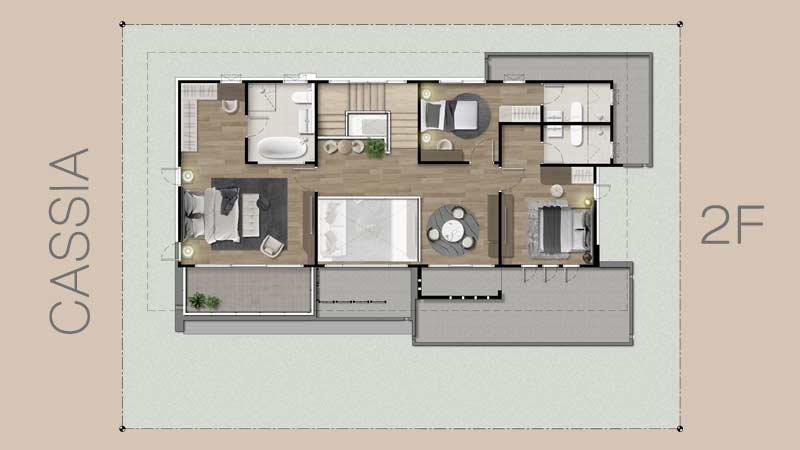 บ้านเดี่ยวหรู ขนาดใหญ่ที่สุดของโครงการ พื้นที่ใช้สอยเกือบ 340 ตร.ม. 4 ห้องนอน 4 ห้องน้ำ รองรับการอยู่อาศัยทุก Generations พร้อมโซลาร์ 7 kw และแบตเตอรี่สำหรับใช้งานไฟฟ้าตอนที่แสงแดดน้อยหรือตอนกลางคืน นอกจากนั้นยังมีระบบจัดการคุณภาพอากาศลด PM 2.5 ในตัวบ้านให้อากาศสะอาดบ้านเย็นสบาย อยู่สบายใกล้ชิดธรรมชาติ