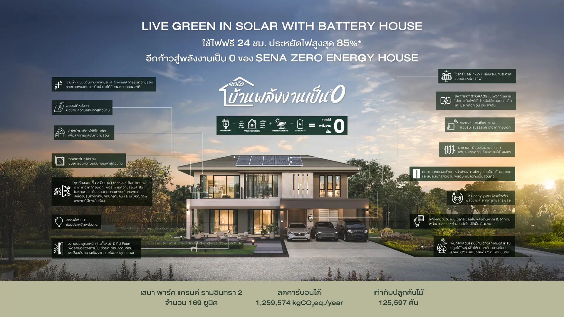 เสนาเราพัฒนา Zero Energy House ไปอีกขั้น พร้อมก้าวสู่การเป็นผู้นำการพัฒนา “ที่อยู่อาศัยแห่งอนาคต” ด้วยการเป็นอสังหาฯ รายแรกที่ติดตั้ง โซลาร์พร้อมแบตเตอรี่ให้บ้านทุกหลังในโครงการ